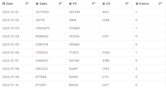 주어진 데이터(basic2.csv)에서 새로운 컬럼(1일 이전 시차 컬럼)을 만들고, Events가 1이면서 Sales가 1000000이하인 조건에 맞는 새로운 컬럼 합을 구하시오