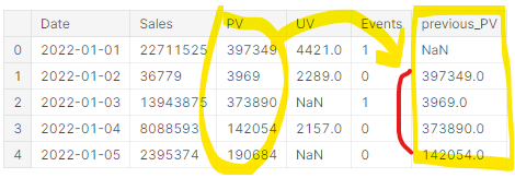 shift(PV,1) #pv값을 다음으로 한칸 이동