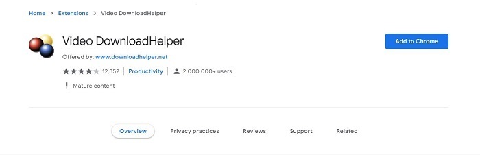 Video DownloadHelper는 원래 Firefox에서 출시되었지만 이제 Chrome으로 옮겨졌습니다! 반짝이는 다운로드 기능을 제공하는 이 안정적인 웹 비디오 다운로더는 클릭 한 번으로 Chrome에서 온라인 비디오를 몇 초 안에 저장할 수 있는 서비스를 제공합니다.
