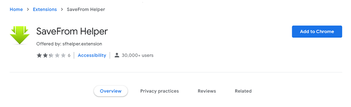 Chrome용 비디오 다운로더에 대해 언급하면 SaveFrom Helper도 목록에 포함되어야 합니다. 이 Chrome 확장 프로그램은 이미지, 오디오 및 비디오를 오프라인에서 쉽게 다운로드할 수 있도록 40개 이상의 사이트에 통합할 수 있습니다. 온라인 콘텐츠를 다운로드하는 데 활용하는 동안 놀라운 기능에 놀라게 될 것입니다.