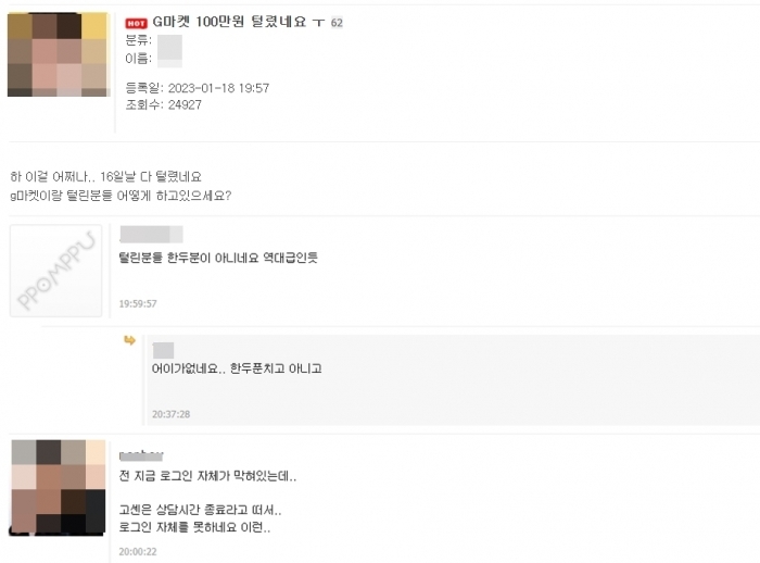 온라인 커뮤니티 뽐뿌에는 19일 이런 내용의 피해 호소글이 잇따르고 있다. 지마켓에서 상품권을 구입했다는 A씨는 "지마켓 상품권 100만원을 선결제 했는데 어제(18일) 확인해보니 지난 16일 모두 사용됐다고 확인됐다"고 했다.