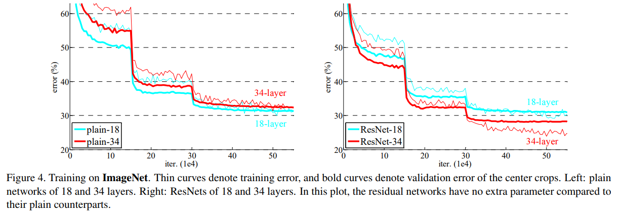 가장 처음에 나왔던 Figure 1과 비교하여 생각해본다면, layer가 더 deep해졌지만, error가 떨어지는 결과로 성능을 입증하고 있습니다.