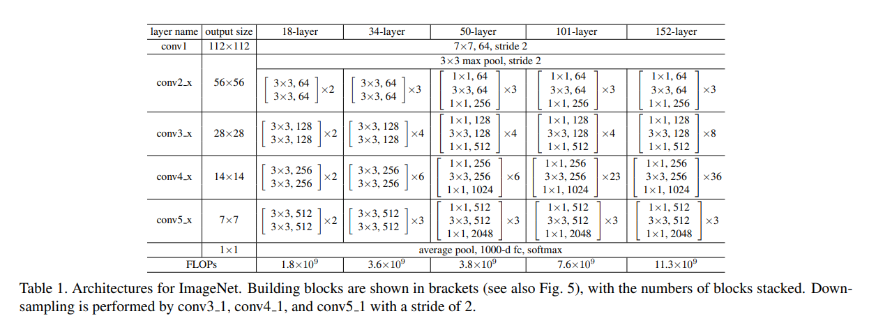 ResNet은 위 Table 1을 통해 확인해볼 수 있듯이, 18-layer부터 152-layer까지 layer를 점점 더 깊게 쌓았는데요.