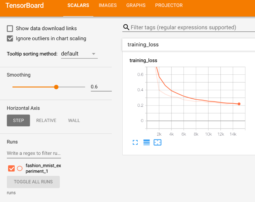 텐서보드에 스칼라를 입력하여 그래프도 볼 수 있습니다.