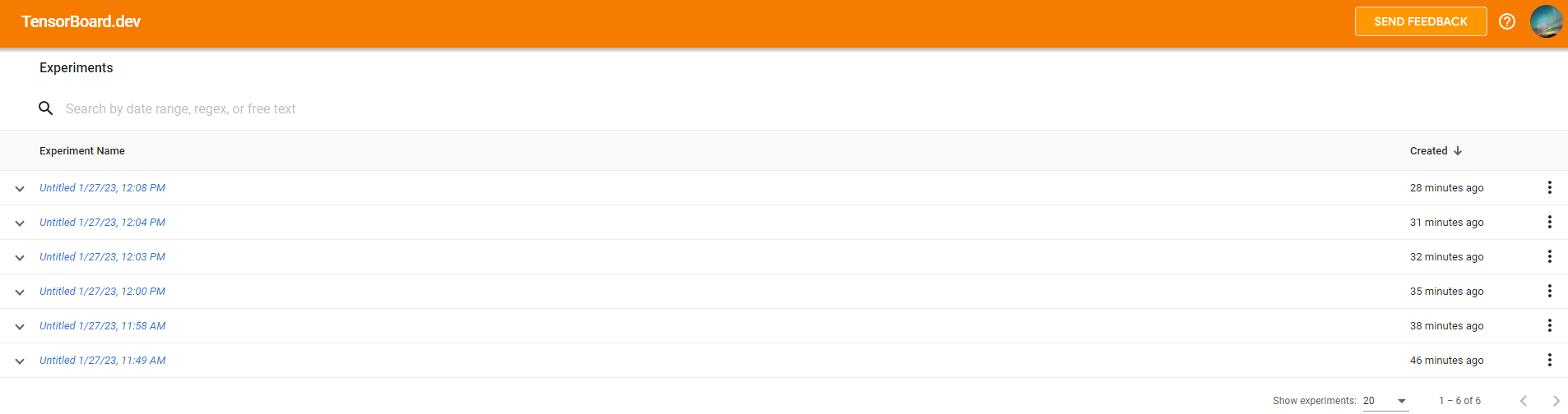 https://tensorboard.dev/experiment/에 접속하시면 업로드 된 텐서보드를 확인할 수 있습니다.