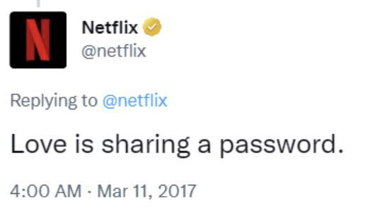 앞서 넷플릭스는 '사랑은 비밀번호 공유'라며 '계정 공유'를 마케팅 수단으로 활용했습니다.