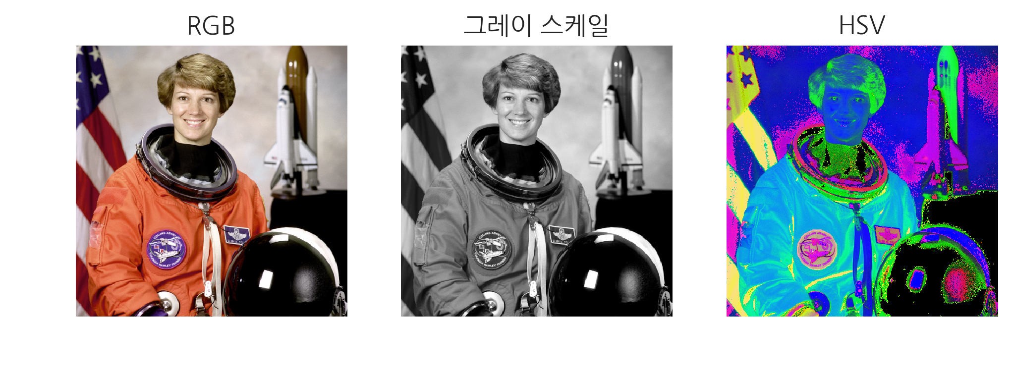 컬러사진, 흑백사진, 그리고 또 다른 컬러모델 HSV(빛의3속성 Hue,Saturation,value 색상,채도,명도)도 있습니다.이 외에도 CMY(색의3원색,cyan magenta, yellow)이 있는데 가장 흔히 쓰고 일반적으로 얘기하는건 RGB입니다.