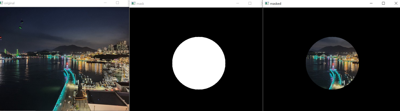 원본사진과 AND연산을 해서 원 부분을 제외한 나머지는 0으로 처리했습니다.