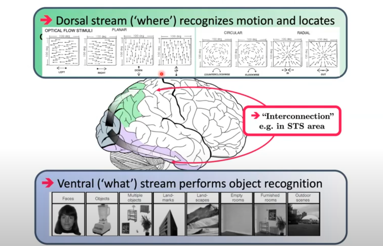 아래쪽에 있는 패스가 대부분의 정보를 처리하는 부분인데 컬러 및 공간 디테일 정보(what) (slow) (P-cells),