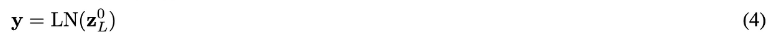 식(2),(3) Transforme Encoder에 해당하는 수식입니다. 이전 입력 값에 Layer Normalization한 후에, Multi-head Self-Attention을 적용합니다. 해당 값을 skip connection을 해줍니다.