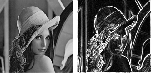 1차 미분 값의 크기 : 영상에서 윤곽선의 존재여부