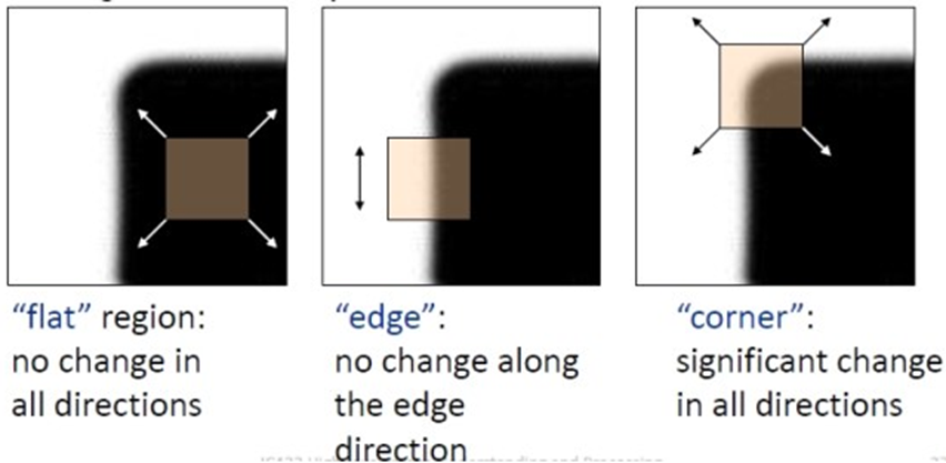 Corner일 경우 모든 방향으로 window를 움직일 경우, intensity의 변화가 크다.