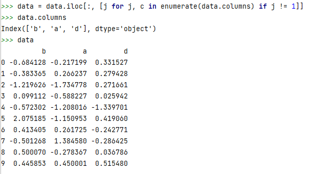 data = data.iloc[:, [j for j, c in enumerate(data.columns) if j != n]]