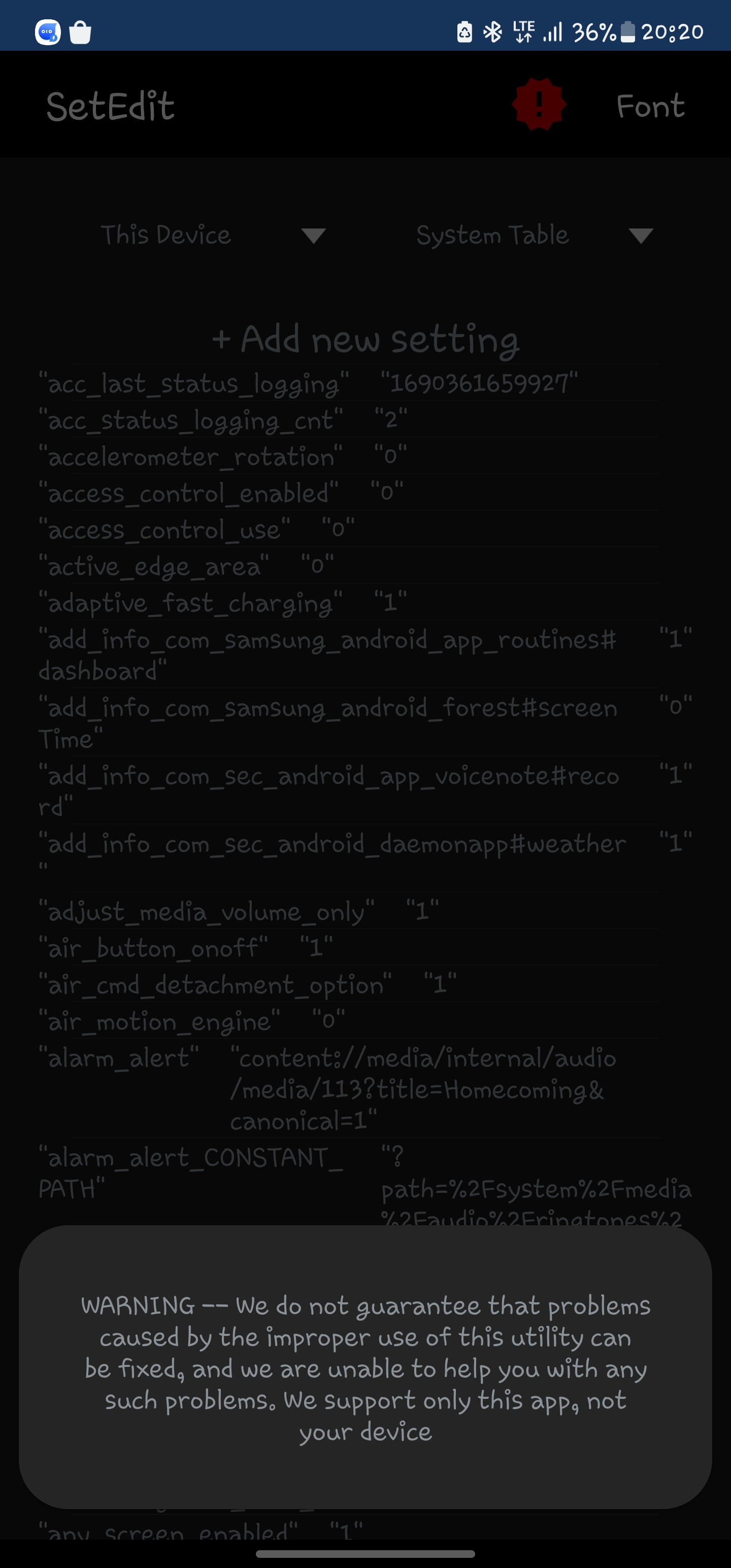 구글 플레이 스토어에서 셋에디트 어플을 받습니다. 핸드폰의 database를 수정하는 어플입니다.