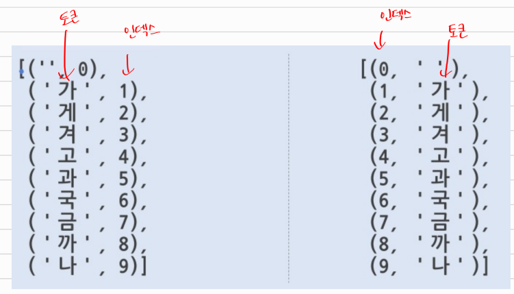 [(0, '가'),