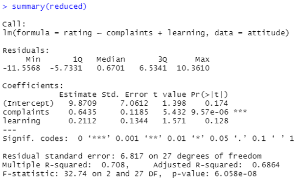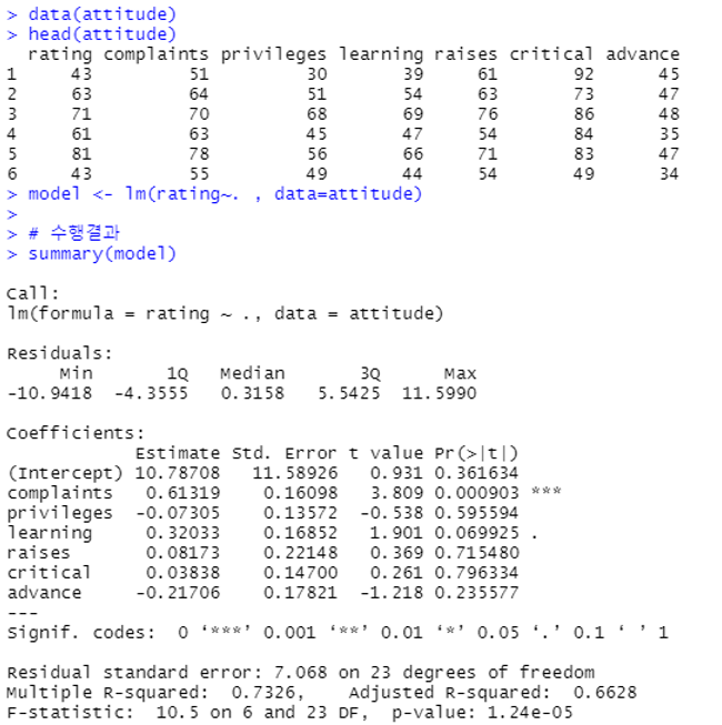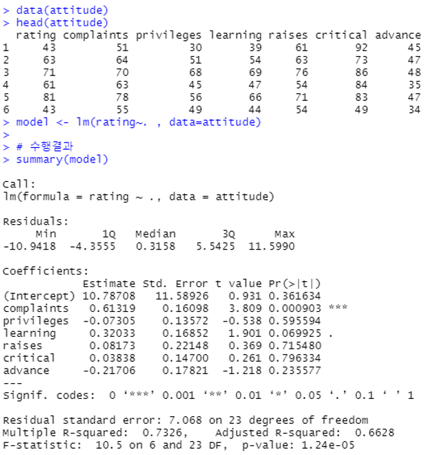 변수중 통계적으로 유의한 것은 complaints, learnings
