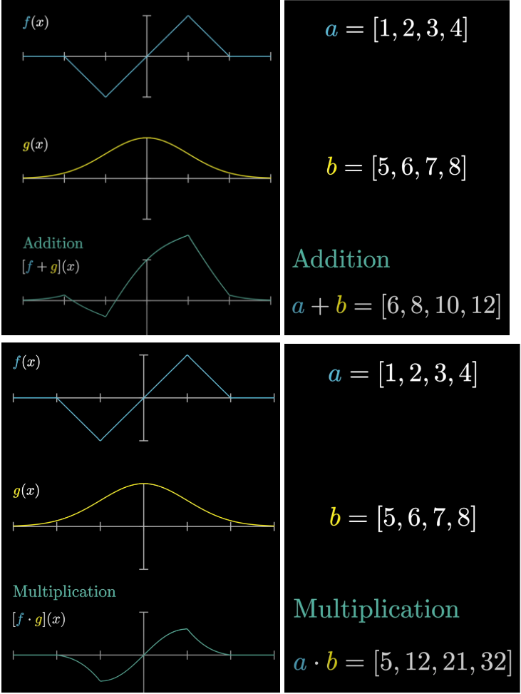 a,b 두개의 벡터가 있습니다.두 함수를 연산하여 새로운 함수를 얻는 가장 간단한 방법 중 하나는 단순히 더하는 방법이 있습니다.