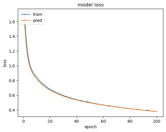 plt.legend(['train', 'pred'], loc='upper left')
