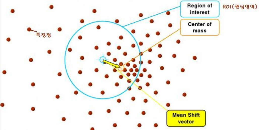 2. 선택된 범위 안에 들어있는 특징점 들의 밀도가 가장 큰 곳을 찾는다.
