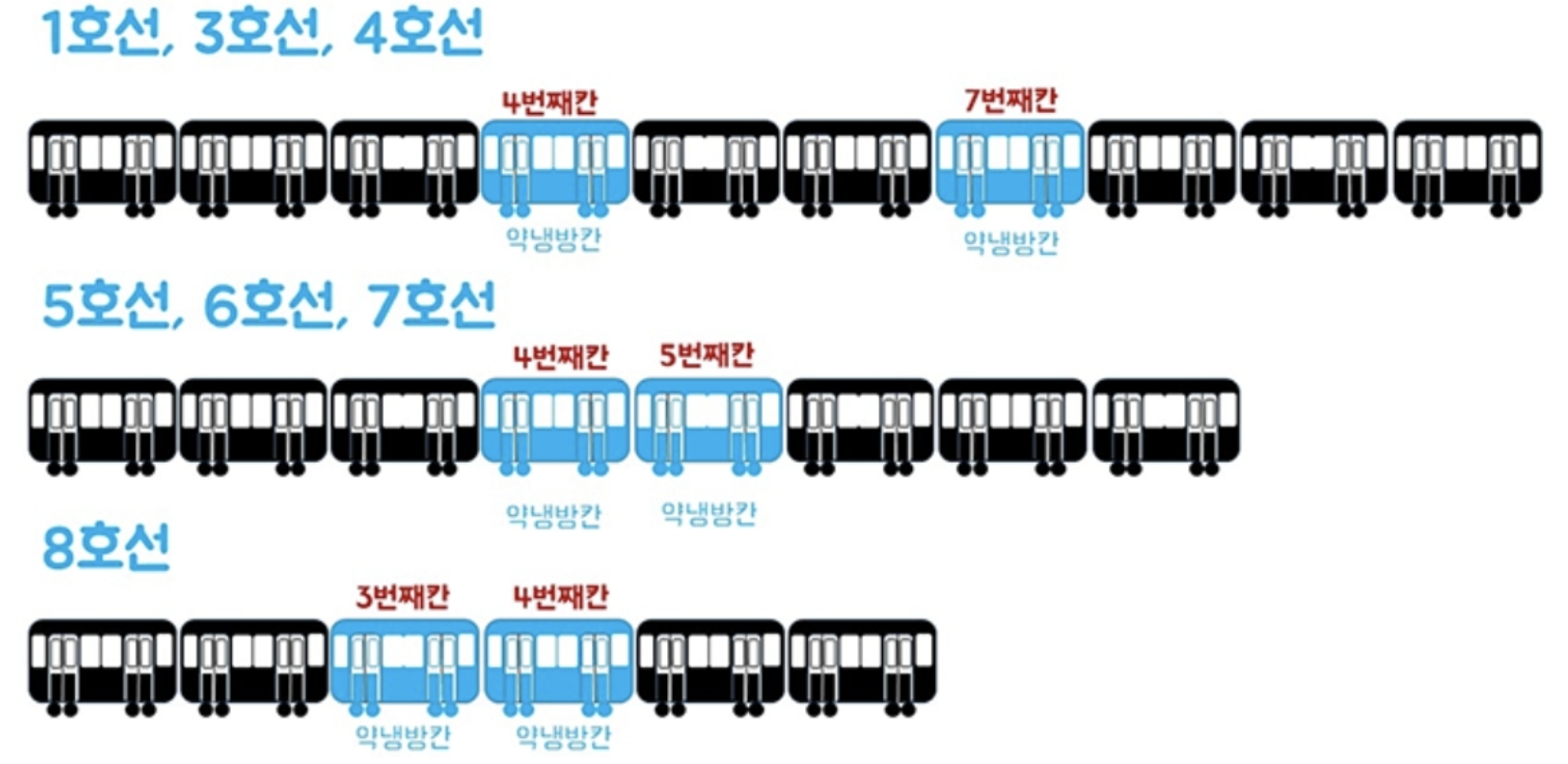 서울 지하철 호선별 약냉방칸은 다음과 같습니다