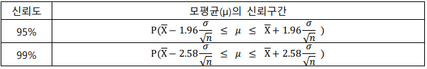 [표 13.2] 신뢰도와 모평균 신뢰구간