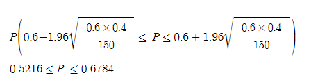 𝑝̂ = 90/150 = 0.6